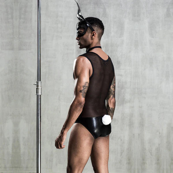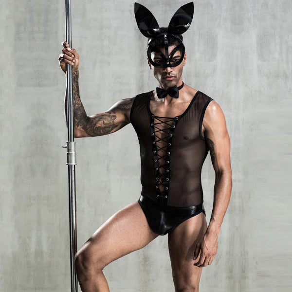 El Disfraz Conejo Coqueto - JSY es todo lo que necesitas para convertir cualquier noche en un momento ardiente e inolvidable. Este conjunto incluye un body de malla ajustado con cordones, que resalta tu figura y te hace sentir seguro y sexy. Además, el antifaz con orejas le da un toque misterioso, mientras que el collar de moño y la coqueta cola de conejo completan este look atrevido y lleno de fantasía.