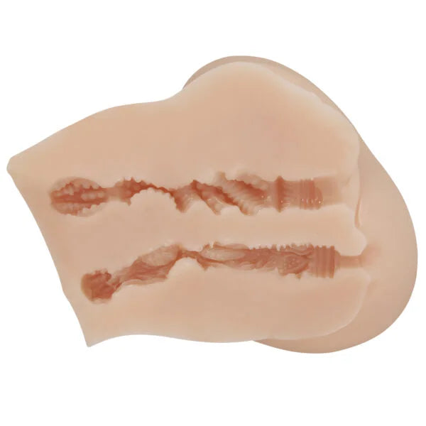 Elige entre la vagina o el ano realistas de este masturbador de doble entrada. Diseñado para verse y sentirse igual que uno real, te costará distinguir entre estos hermosos orificios y los que dejaste tras una penetración. Al introducirte en cualquiera de los tentadores y estrechos orificios, te encontrarás con texturas gloriosas que te seducirán y estimularán de pies a cabeza. Introduce el vibrador bala incluido para que tu mente y tu pene queden completamente alucinados mientras penetras profundamente.